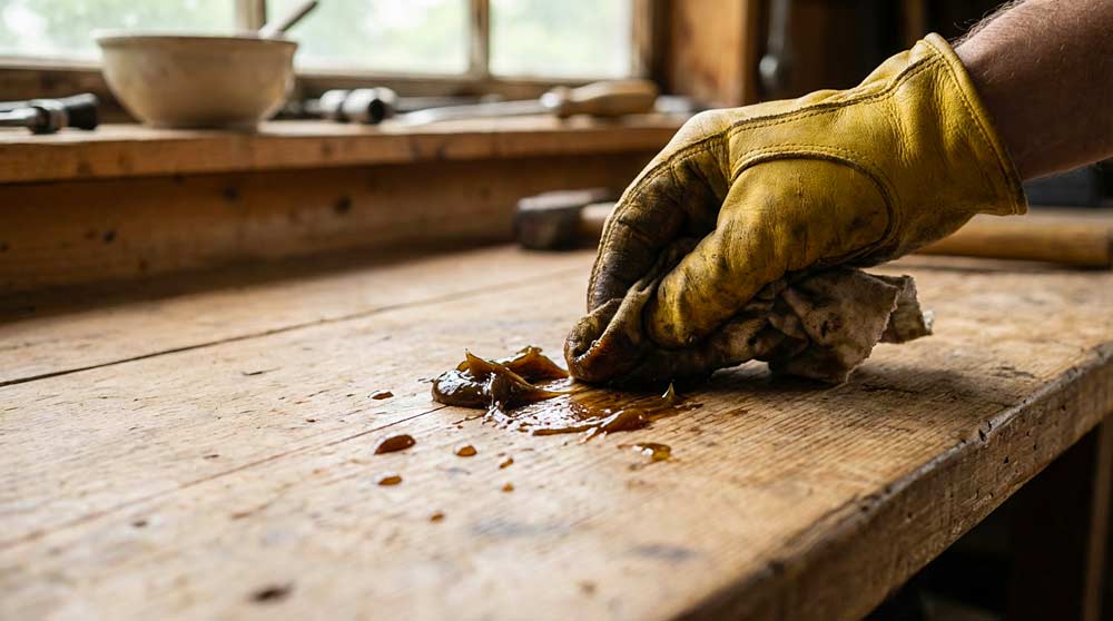 Wie man hartnäckige klebrige Flecken von Öl auf Holzoberflächen entfernt